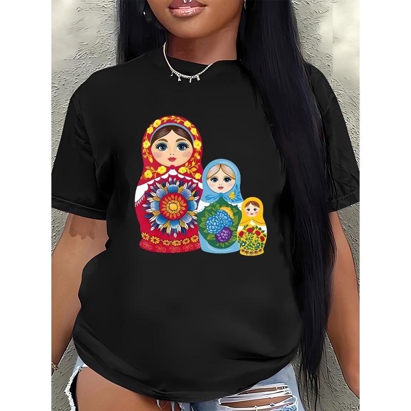 Black Russian Doll Graphic Short Sleeve Tee Lightweight Durable Casual Everyday Comfort Top