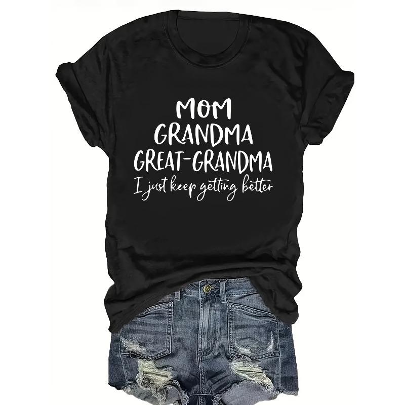 Women's Plus Size "MOM GRANDMA GREAT-GRANDMA" Quote Print Tee Pink Round Neck Short Sleeve Relaxed Fit Nontransparent All-Season Casual Top