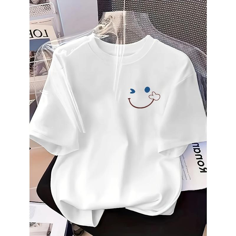 Women's Joyful Face Letter Graphic Tee Crew Neck Short Sleeve All-Season Machine Washable Playful Casual Trendy Top
