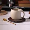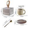 Set Retro Ceramică Cana de Cafea și Farfurioară cu Suporturi din Lemn și Lingurițe pentru Ceai și Cafea