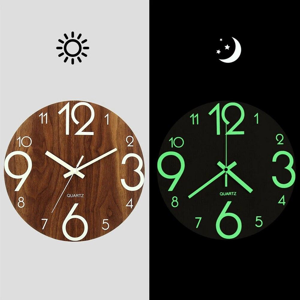 Ceas de perete luminos de 12 inch Ceasuri de perete de bucătărie, silențioase, fără ticăituri, cu lumini de noapte, pentru pat de sufragerie de interior/exterior