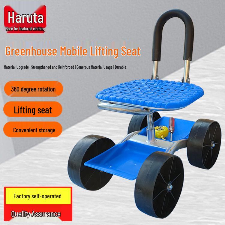 Garden Work Mobile Stool with Wheels - Rotating Tool Cart for Easy Picking