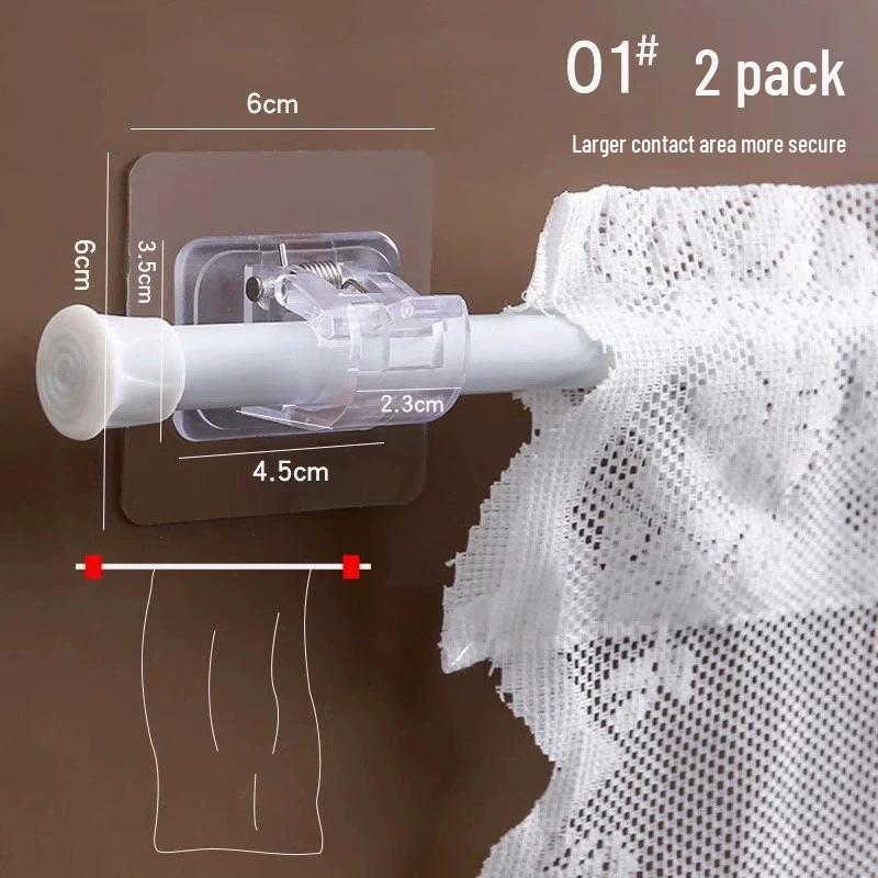 Punch-Free Telescopic Curtain Rod Hook – Adhesive Wall Bracket for Hanging Curtains