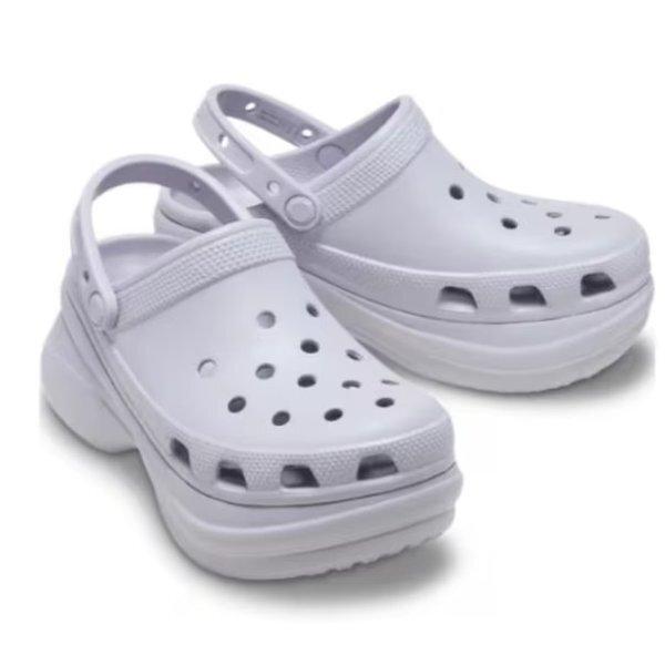 The Crocs Women's Bay Clog 206302-5PS is a sport slipper featuring a unique height of 6cm (measured from the sole to the heel). It has textured details that wrap around the heel, toe box, and collar, with the option to customize with Jibbitz™ charms. The Iconic Crocs Comfort™ technology offers lightweight, flexible, and 360-degree comfort. Made from Croslite™ material, it performs well on land and in water while being durable.