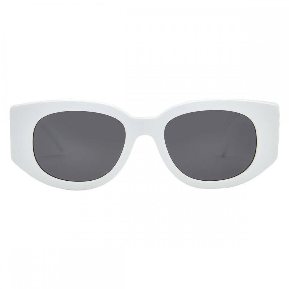 Acești ochelari de soare de damă Salvatore Ferragamo (număr de model: SF1053S) au o formă elegantă cat-eye. Codul culorii este 101, cu un cadru alb realizat din acetat și lentile gri.. Lățimea lentilei este de 52 mm, lățimea punții este de 19 mm, iar lungimea brațului este de 140 mm.. Articolul oferă protecție UV 100% și nu este polarizat. Este ochelari de soare cu ramă completă, iar ambalajul producătorului este inclus.