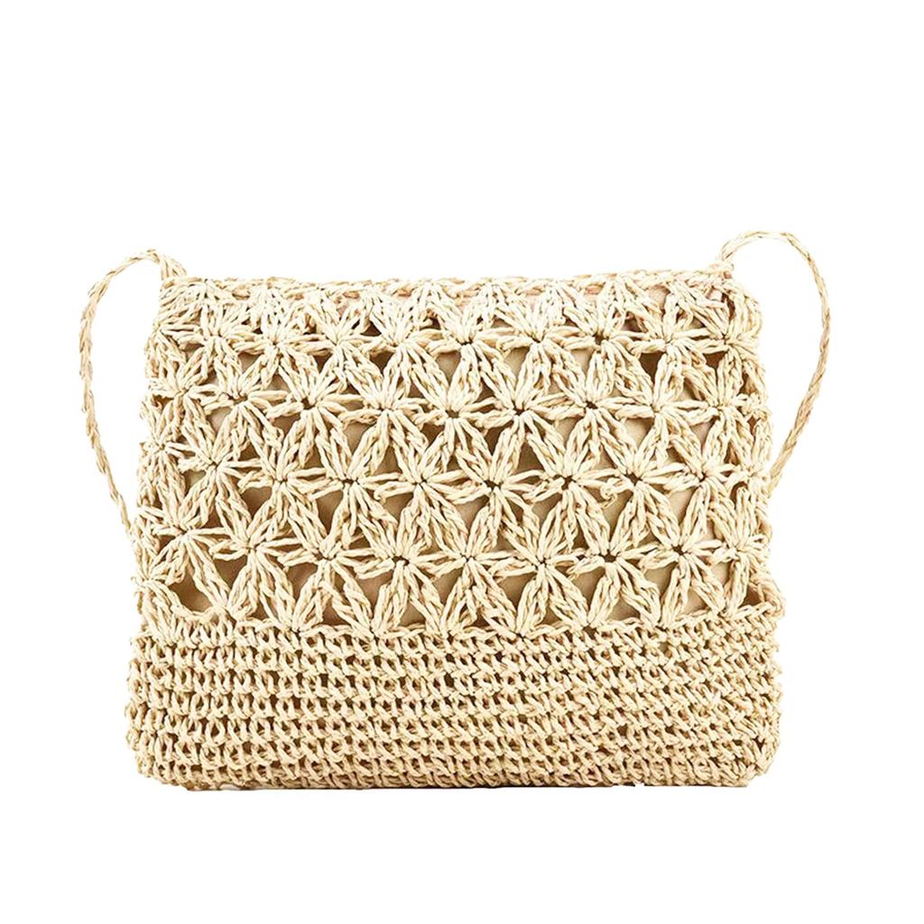 Lapimou Macrame Shoulder Bag, Perfect for Yukata and Kimono, Summer Pochette, Small Straw Bag, Shoulder Bag, Basket Bag, Summer Mesh (Off-White)