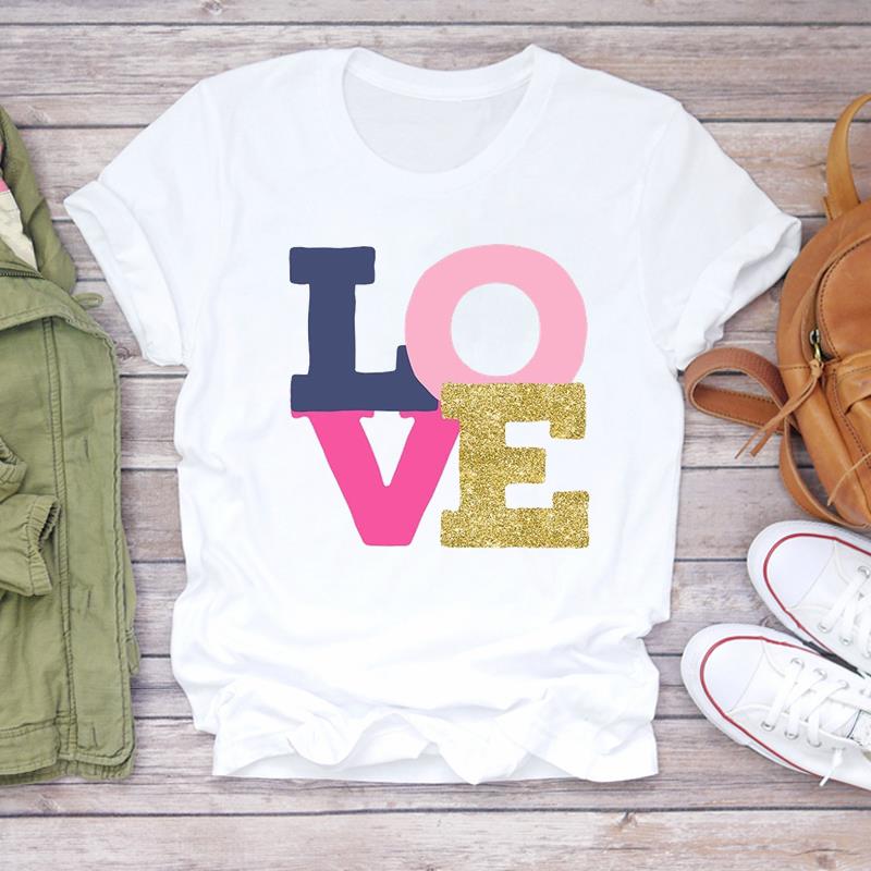 (Asian Size) trend love cute Lady Female Casual T Shirt Printed Clothing Top Fashion Short Sleeve T-shirts Women Graphic Tee