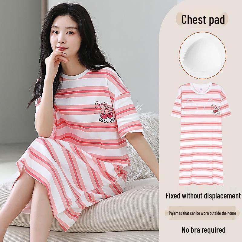 Gureide Women's Summer Cotton Short Sleeve Nightdress with Chest Pads