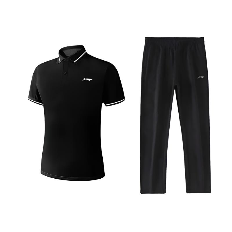 Li Ning Logo Print Simple Fashion Quick-Dry Comfortable Versatile Polo Shirt Short Sleeve Casual Sports Set Unisex sports set YPLV047-3+YKLU881-1