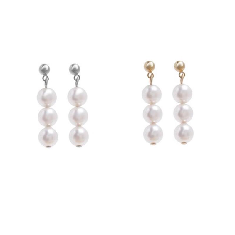 Indullo Silver and Gold Women's Earrings with White Beads