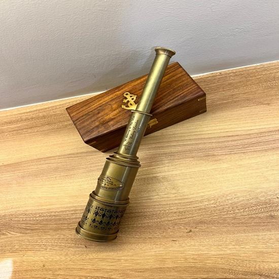 Each telescope is carefully handcrafted from high-quality solid brass, giving it an authentic antique look and durable finish. The polished brass body reflects classic 18th–19th century maritime instruments used by sailors and explorers. The wooden storage box adds an elegant, rustic touch and keeps the telescope safe when not in use.