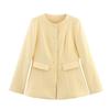 European & American Women's Round Neck Slim Fit Short Blazer with Row Button