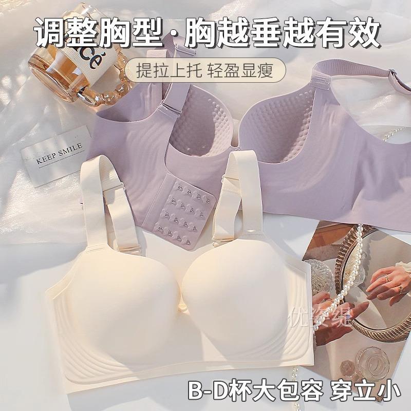 Latex seamless underwear women's big breasts show small thin styles without steel rings, anti-sagging, sub-breast adjustment type large size bra