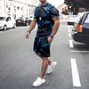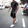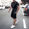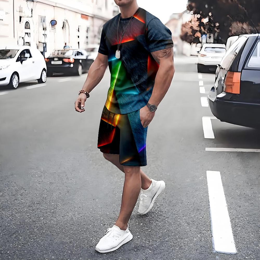 Plus Size Irregular Geometric T-shirt Shorts 2-piece Set Quick Drying Loose Men's Drawstring T Shirts Short Sleeve Tee Summer