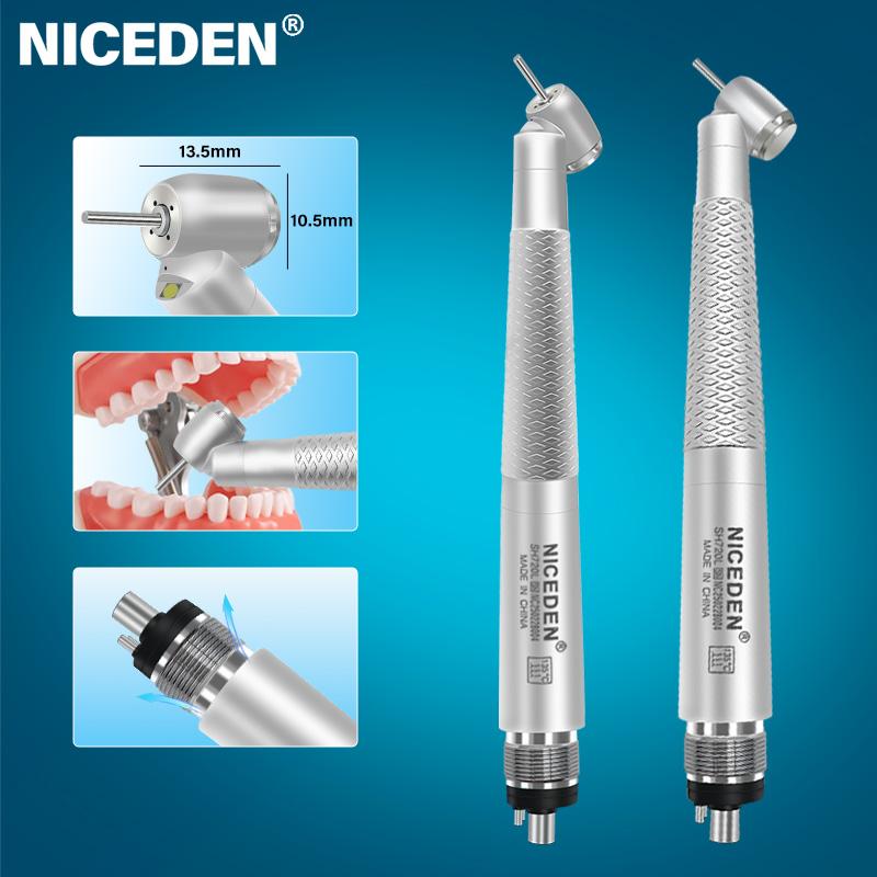 The Niceden Dental 45° Angled Handpiece is a specialized dental instrument designed for precise dental procedures. Its 45° angled design allows for treatment in hard-to-reach areas with no blind spots, making it an essential tool for dental professionals.