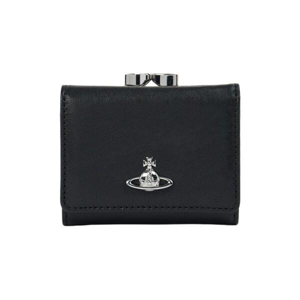 - Description: Vivienne Westwood is renowned for its innovative designs and luxury appeal. This small frame wallet combines practicality and style, making it suitable for everyday use. Crafted from premium leather, its durability is remarkable and features a sophisticated color and intricate details that stand out. The interior is designed with ample storage space to efficiently organize cards and cash.