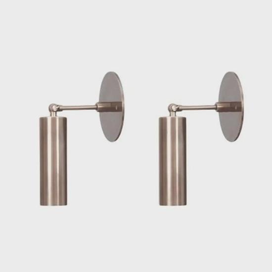 Set de 2 Aplice de Perete Elegante Vine cu două aplice de perete cilindrice din alamă asortate, perfecte pentru a crea simetrie și iluminat echilibrat.