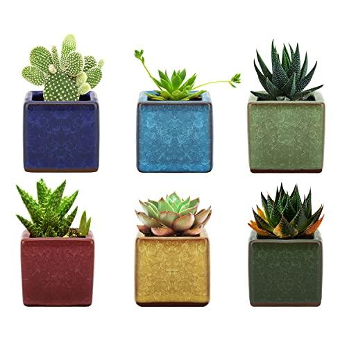 Lewondr 6-Piece Ceramic Planter Pots for Succulents, Bonsai, Window Treatments, and Miniature Plants, Size 2, 6.35*6.35*6.35cm (Note: Set includes pot