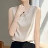 Women's Champagne Camisole Elegant V-Neck Sleeveless Lace Trim Silk-Like Top