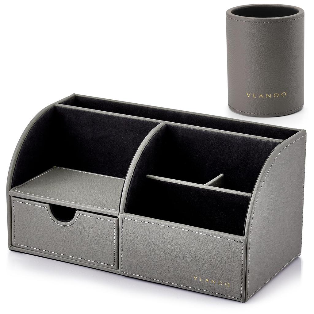 Vlando Desktop Storage Box with Pen Holder and Small Item Storage Rack (Gray)