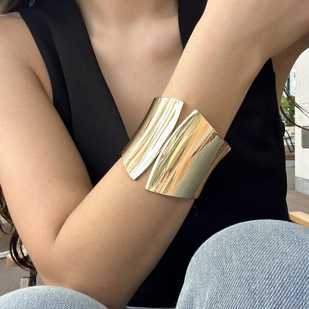Exaggerated Design Metal Smooth Spring Wide Bracelet Bracelet Personality Punk Open Bracelet