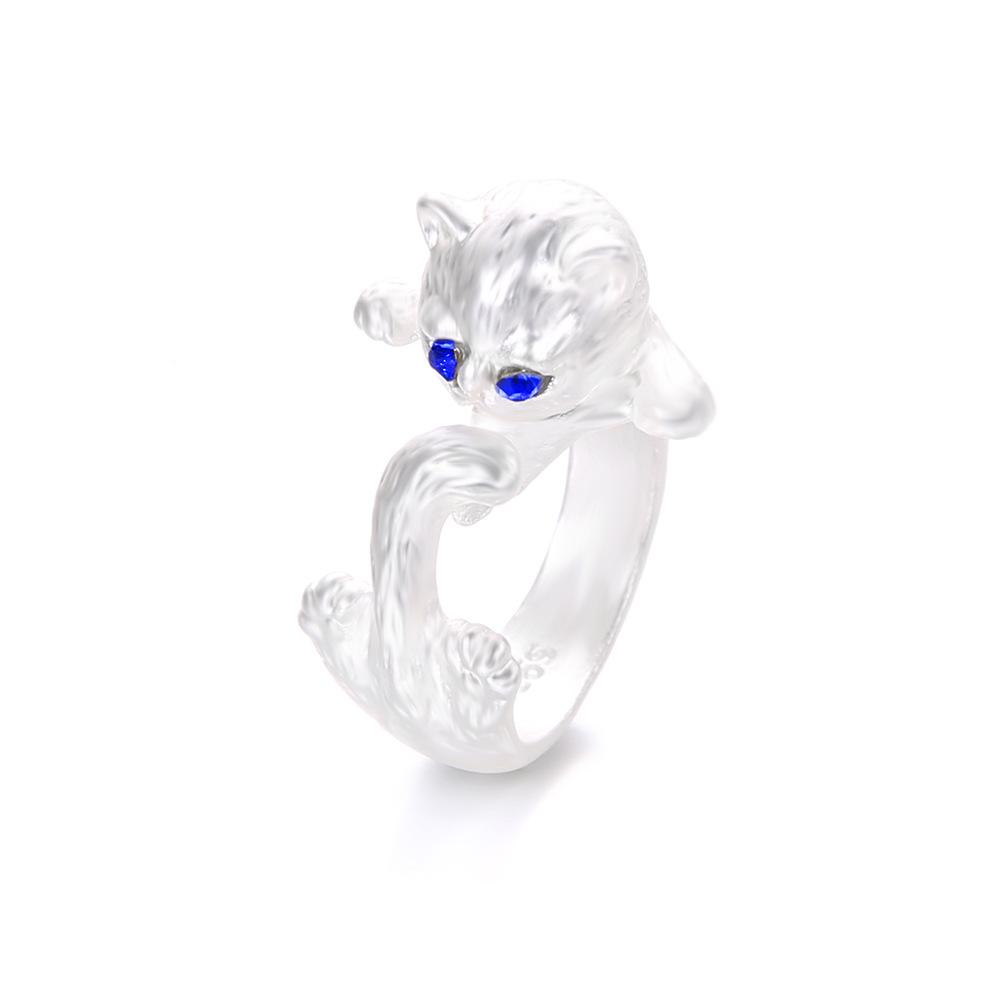 Alloy Diamond-Set Personalized Open Blue-Eyed Cat Ring, Handmade Creative Jewelry Women'S Jewelry