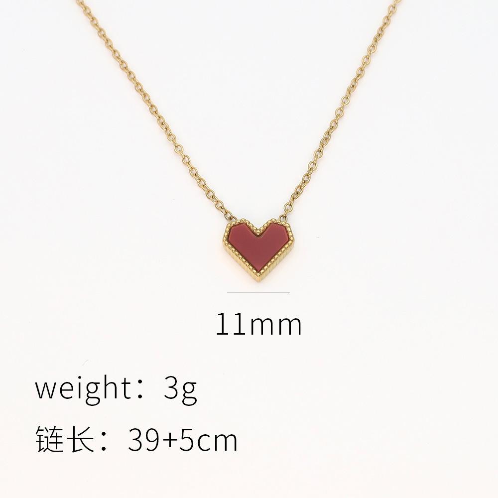 Wind French Retro Red Acrylic Love Collarbone Chain Women'S 18K Gold Titanium Steel Necklace