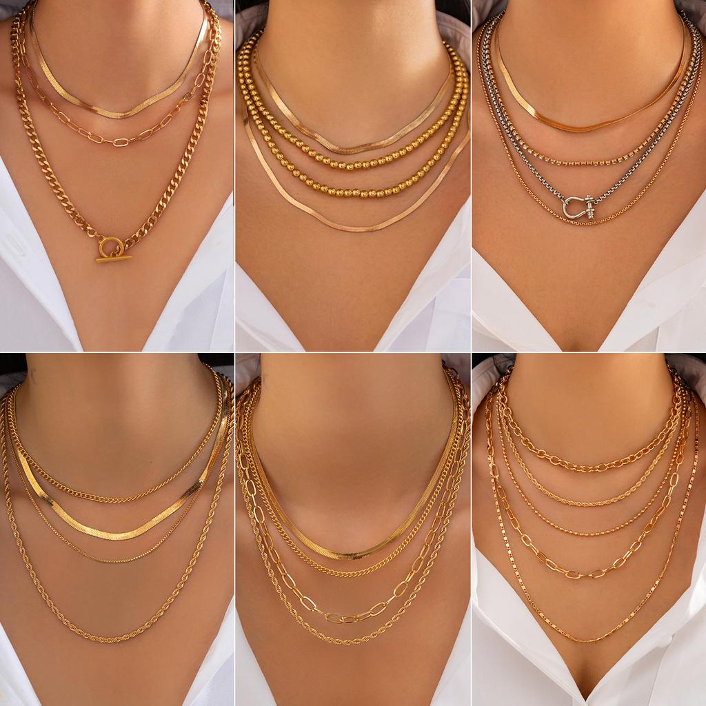 Hip Hop Metal Snake Bone Chain Necklace Punk Style Bead Stacked Necklace Woman