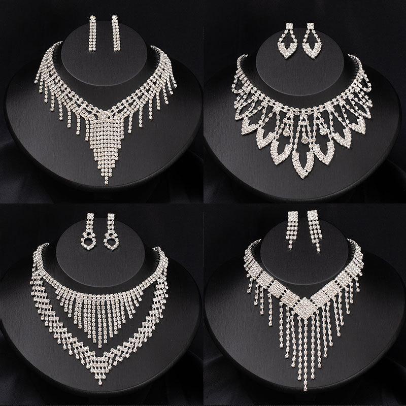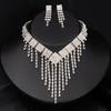Exquisite Luxury Temperament Necklace Earrings Set Banquet Dress Full Diamond Fringe Jewelry Fashion Versatile Bridal Jewelry