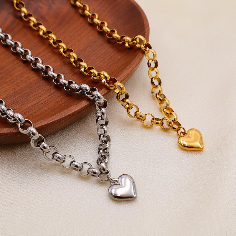 Simple And Versatile Glossy Love Pendant, Titanium Steel Bracelet Ot Buckle Necklace Set For Women
