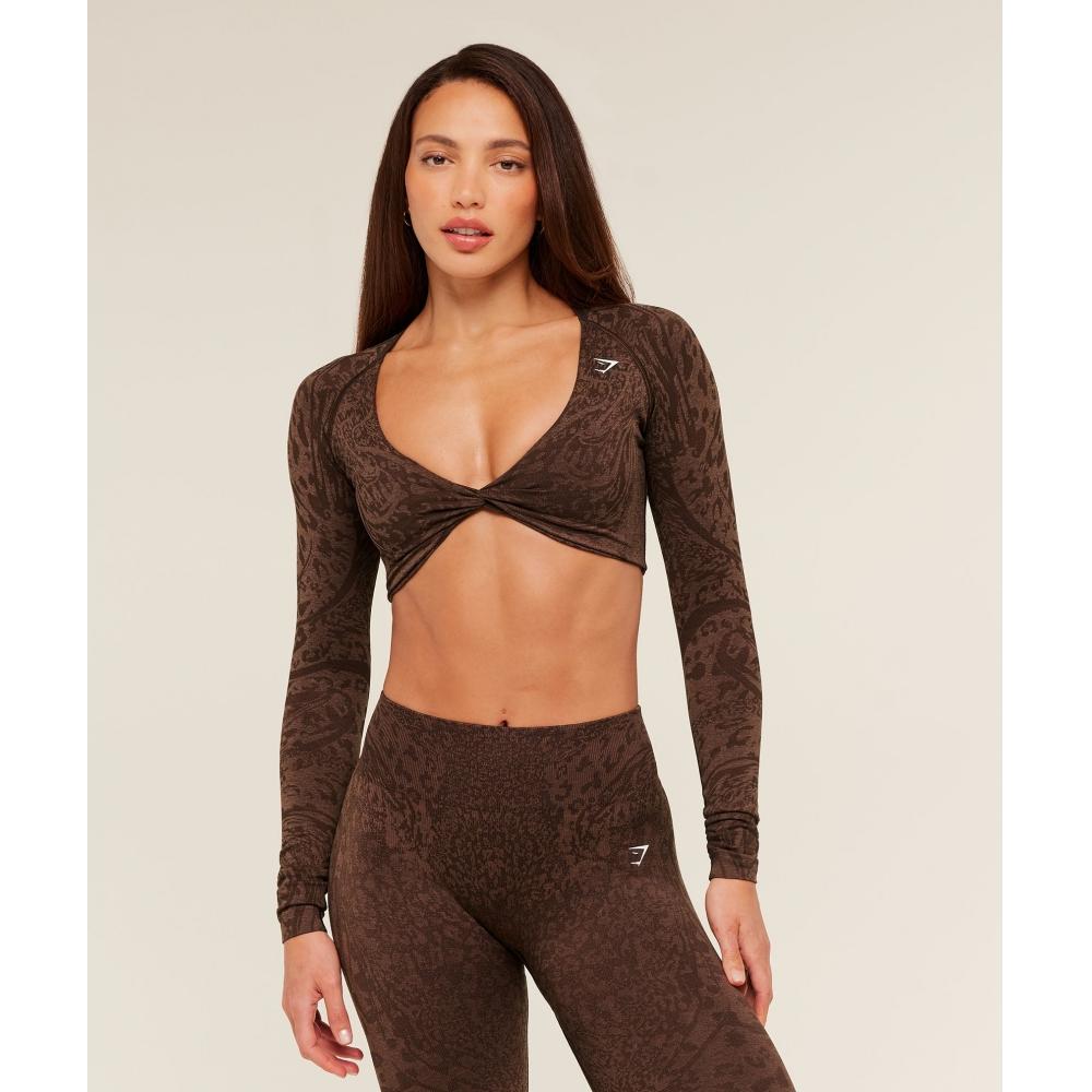 Gymshark Adapt Animal X Whitney Long Sleeve Crop Top Archive Brown Soft Brown b5c9X Ndjw