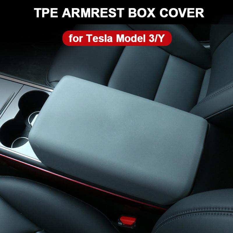 Car Armrest Box Cover For Tesla Model 3 Y 2025 Center Console Panel Protector Pad Soft TPE Cover Auto Decor Interior Accessories