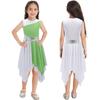 Kids Girls Sleeveless Lyrical Dance Costumes Contrast Color Asymmetrical Figure Skating Ballet Dress
