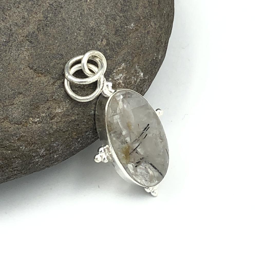 Natural Golden Rutile Gemstone 925 Sterling Silver Jewelry Pendant 1.53" AJP-205