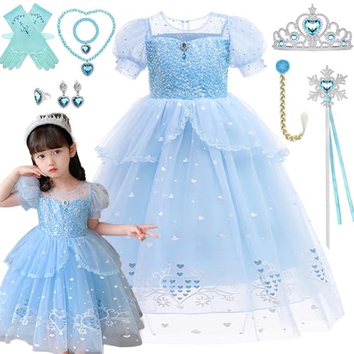 KALAOK Disney Princess Dress for Halloween, Birthdays, Parties, and More, Includes Luxury Accessories, Blue, 140cm