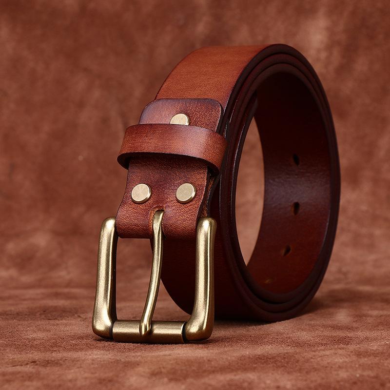 Washed Retro Matte Trend Belt Men'S Genuine Leather First Layer Cowhide Copper Buckle Simple Casual Jeans Belt