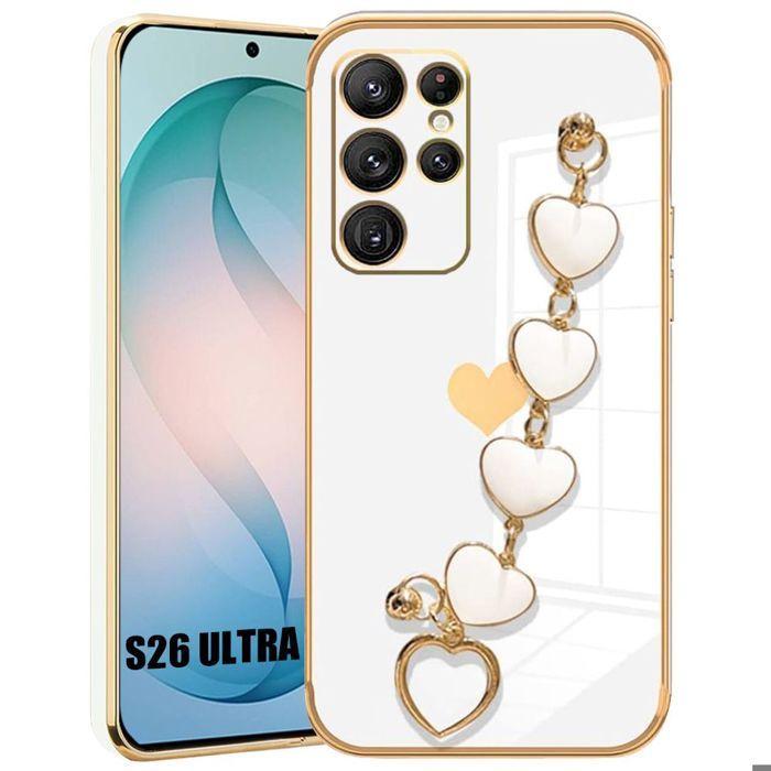 Coque Silicone - BOOLING - pour Samsung Galaxy S26 Ultra - Anti-Rayures avec Bracelet Cœur - Blanc