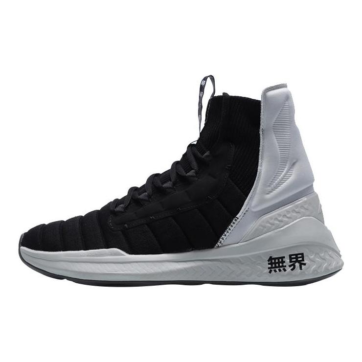 Li Ning Wujie Cushioning Abrasion Resistant Breathable High top Casual Shoes Unisex Black White AFPQ045-1