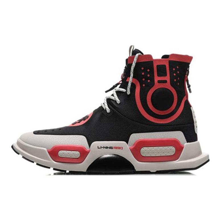 Li Ning Reburn Slip Resistant And Abrasion Resistant Coverage High top Sports Casual Shoes Men's Black Red AGBN054-1