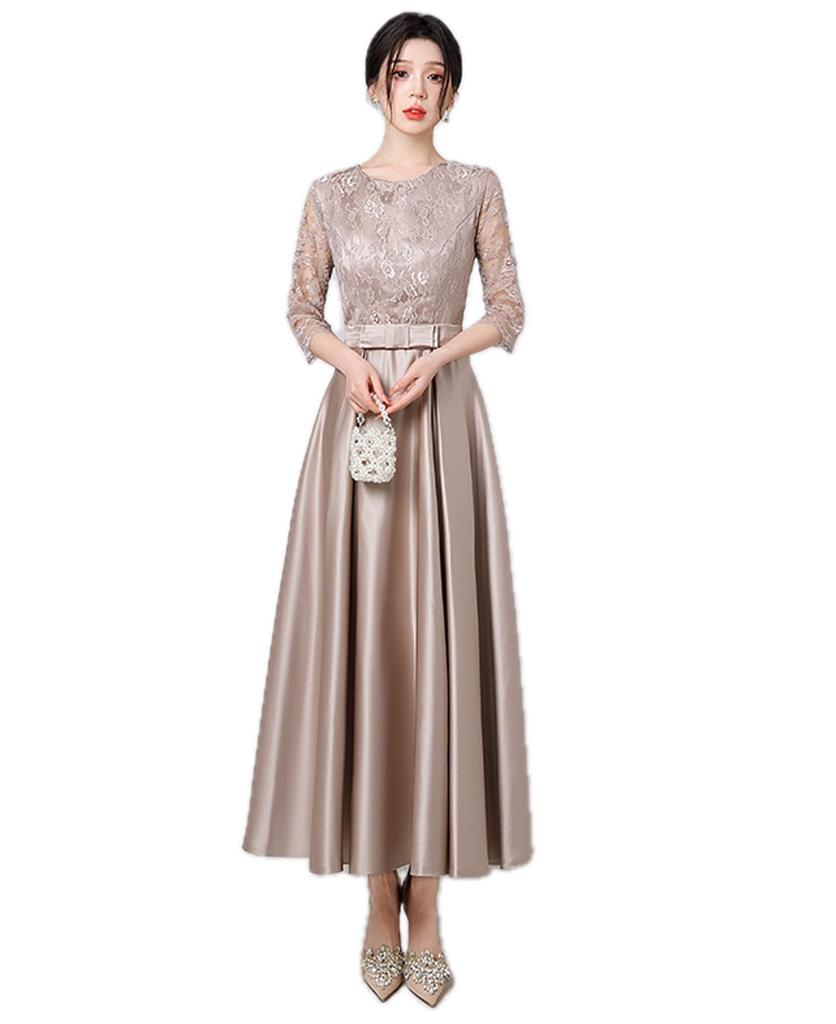 [Specifications] Size: Slim/Small / Elasticity: None / Lining: None / Fabric Thickness: Normal to Slightly Thick / Material: Polyester / Washing: Hand washable / Design: Boat neck, chest padding, 5/7/8 sleeves, satin, lace, sheer, A-line, midi to maxi length, zipper closure / Country of Origin: China
