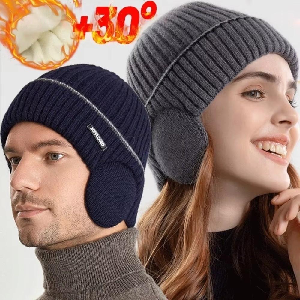 Thickened Knit Cap with Earmuffs Beanie Hat New Knitted Hat Unisex