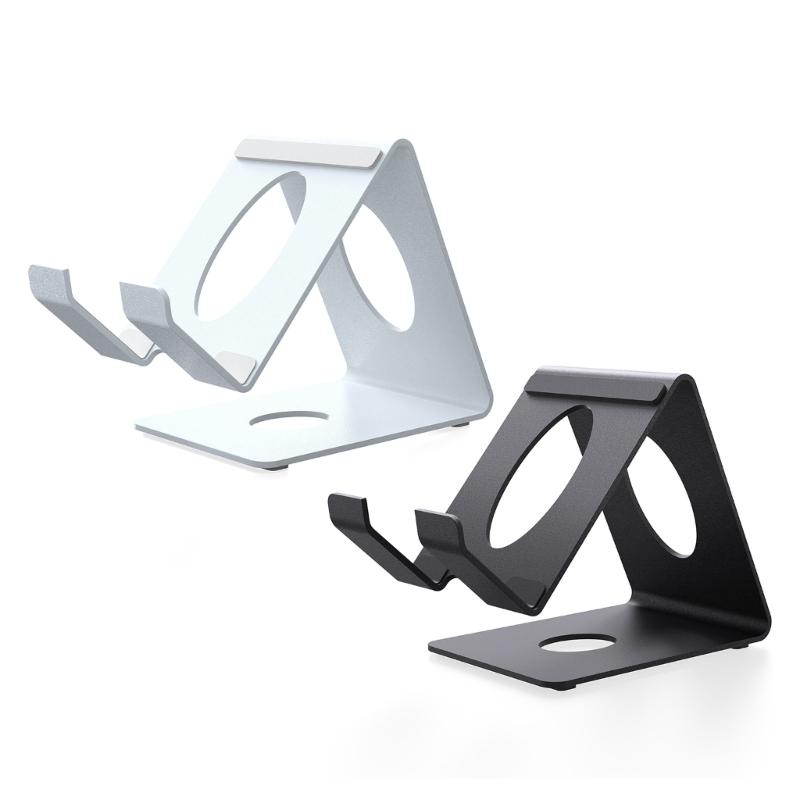 Adjustable tilt angles with double locking mechanisms enable ergonomic positioning for various devices including tablets and smartphones, combining industrial grade aluminum durability with minimalist aesthetics.