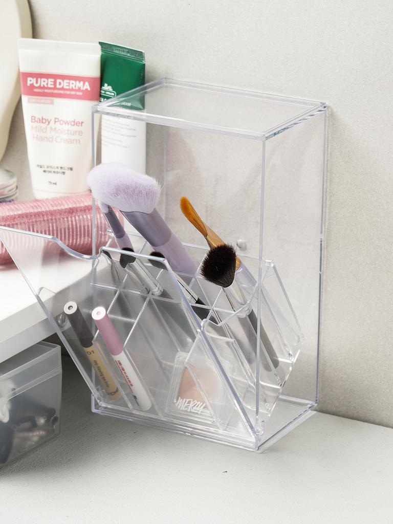 Clear 17-Compartment Lip & Brush Storage Organizer