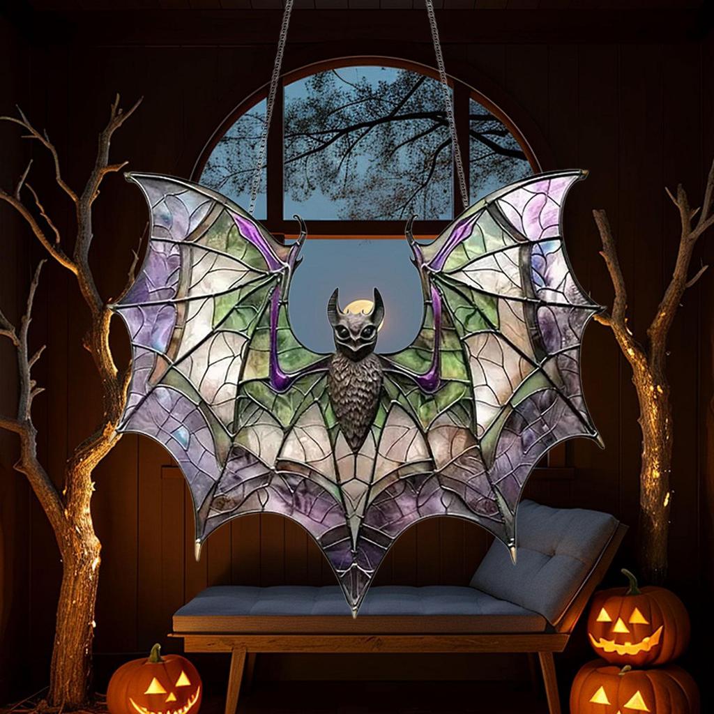 Bat Sun Catcher for DIY House Theme Party Decor Bat Stained Glass Window Hanging for Window Kitchen Office Home Living Room