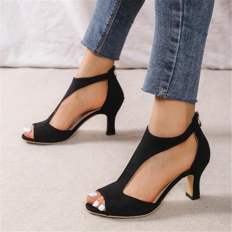 2026 New Women Sandals Simple and Fashion Back Zipper Fishmouth Shoes Women's Summer Stiletto Roman Sandals Size 35-43