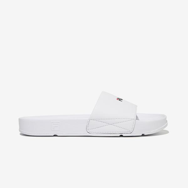 The FILA Drifter v2 1SM01970F_100 is a formal sandal in the men's dress shoe category. This product features a simple upper design with a brand logo point, creating a classic look. It is offered in white and is suitable for both men and women. The slip-on style makes it convenient to wear, especially suitable for casual summer outfits.