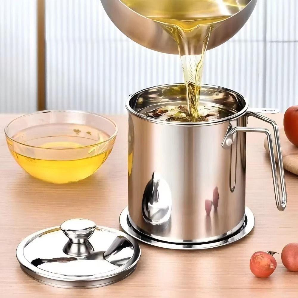 Large Capacity Oil Filtering Pot BPA-Free Stainless Steel Strainer Household
