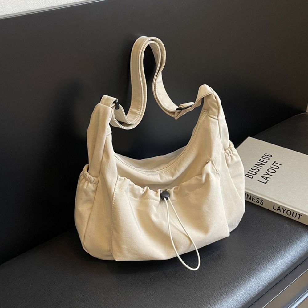 Lightweight Drawstring Tote Bag Solid Color Pleated Shoulder Bag New Nylon Crossbody Bag School