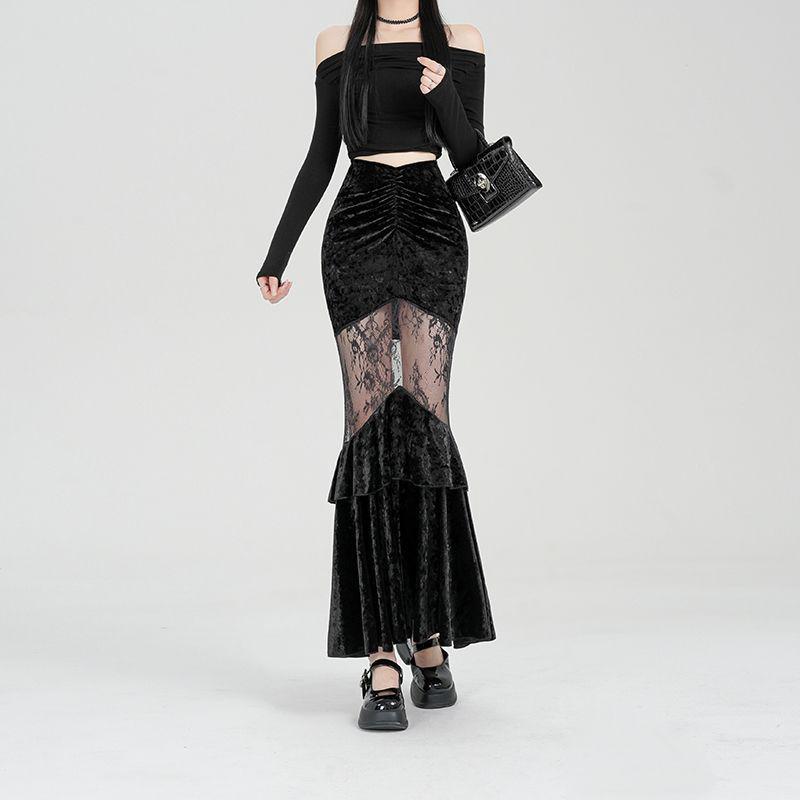 Elegant 2025 Black Velvet Mermaid Skirt for Women