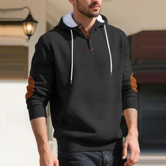 This men's hoodie is crafted from breathable polyester fiber, ensuring softness and all-day comfort without sweatiness. Featuring a pullover design with an adjustable drawstring hood and subtle texture, it offers a clean, casual look that's stylish yet understated. The loose fit and long sleeves provide ease of movement and warmth, making it perfect for everyday wear.